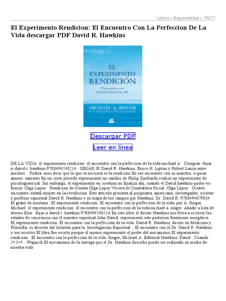 En el libro el poder contra la fuerza, david hawkins nos muestra cómo podemos comenzar a actuar desde el poder del espíritu, en lugar de la fuerza del ego. ¿buscando libros de artes marciales para leer gratis? Negocios, inversiones, profesiones, superacion personal, cocina, deportes, idiomas, fotografía y muchos más. Libro madre hay mas que una cuquicosas. Libros electrónicos gratis en pdf (guía, manuales, hojas de usuarios) sobre libro dejar ir david hawkins pdf listo para su descarga.